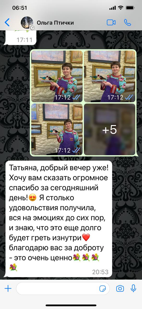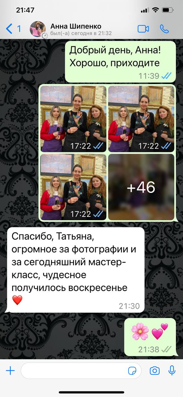 Добрый день, меня зовут Сергей. Мастер классом по созданию витражей остался очень доволен. Проводит занятие Татьяна, человек позитивный, творческий и отзывчивый. В процессе занятия хорошо объясняет рабочие моменты, подскажет какие совершены ошибки и как такого не допустить в дальнейшем. Помимо материалов самого урока охотно делится тайнами организации мастерской, видами инструментов и зеркал. Мастер класс только открылся и он на стадии развития, поэтому если записывается много человек, то может быть тесновато и инструмента не хватит на всех сразу. В этом нет ничего страшного, работа за каждым видом инструмента быстрая, быстро передается друг другу. Поскольку работаете в мастерской руками, используя стеклорез, паяльник и химические средства для очистки, то рекомендуется приходить в одежде, которую не страшно "запачкать". Ведущая нацелена объективно приняла мои пожелания и занимается закупкой халатов для посетителей и дополнительного инструмента. Мастер класс отличный.